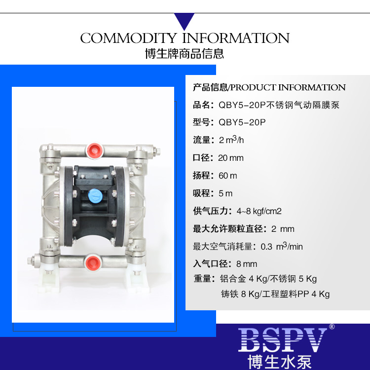 QBY5-20P型不銹鋼氣動隔膜泵