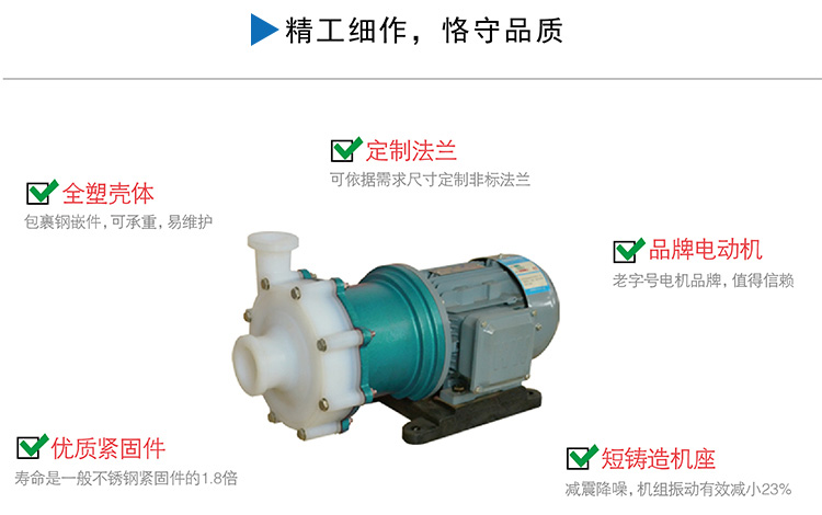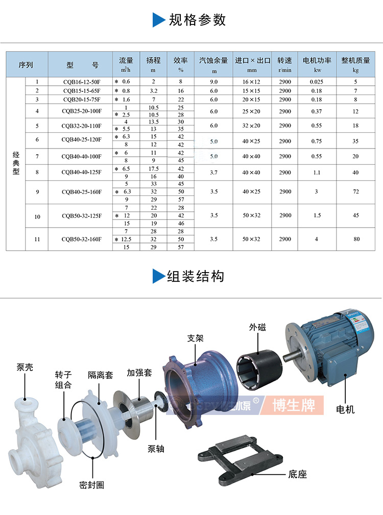 博生牌CQB16-12-50F型氟塑料磁力泵是化工流程中杜絕跑、冒、滴、漏現(xiàn)象,消除環(huán)境污染,創(chuàng)造“無泄漏車間”、“無泄漏工廠”,實現(xiàn)**、文明生產的理想用泵。